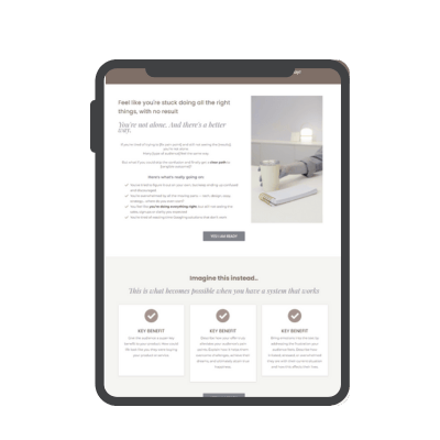 Clean, modern templates, funnels, mockups and mini courses. Created for creators who want clarity and simplicity without the tech overwhelm. Have a look at all the templates that we can offer you.